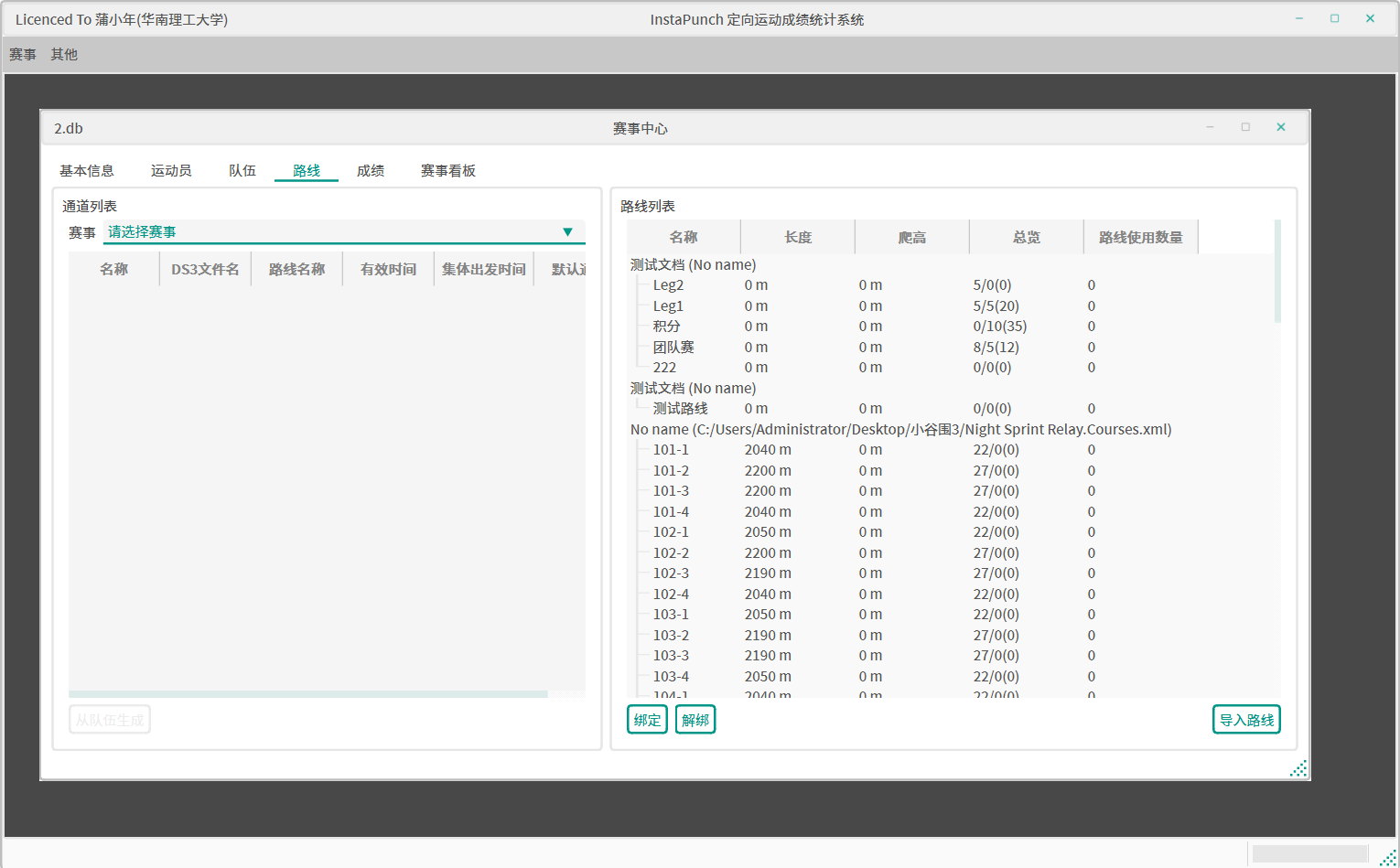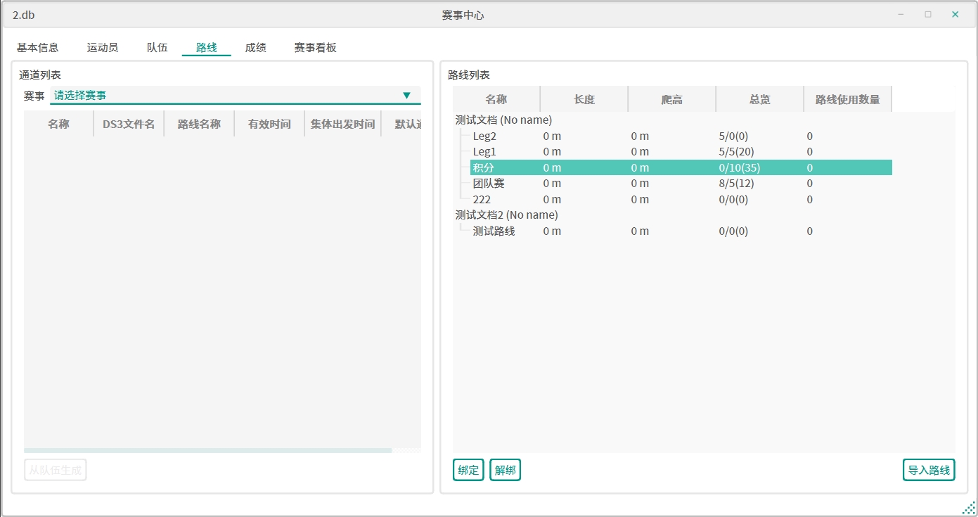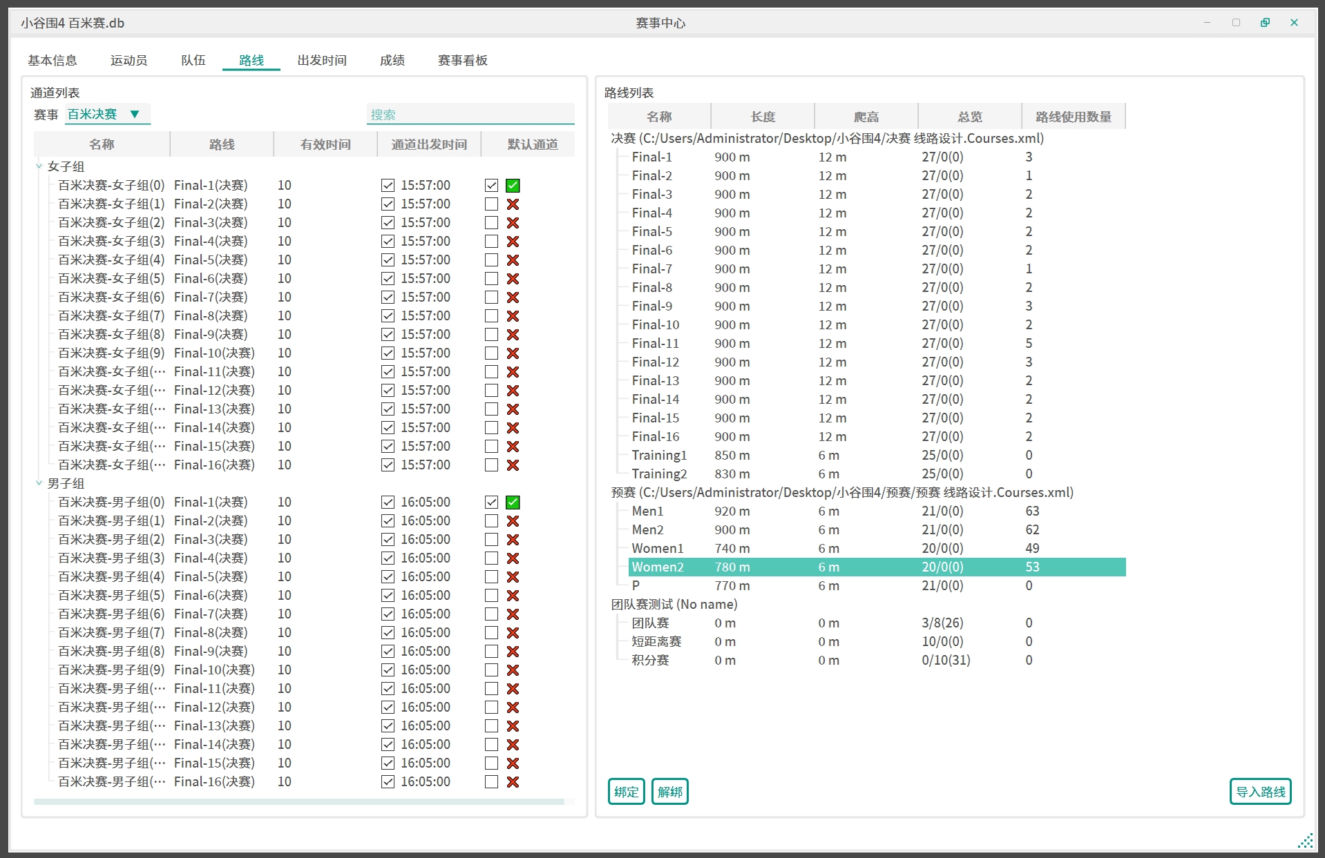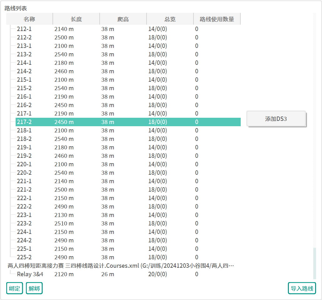 队伍名-棒次格式生成路线。 - 全选接力赛通道,右键使用导入的接力赛路线进行自动绑定。