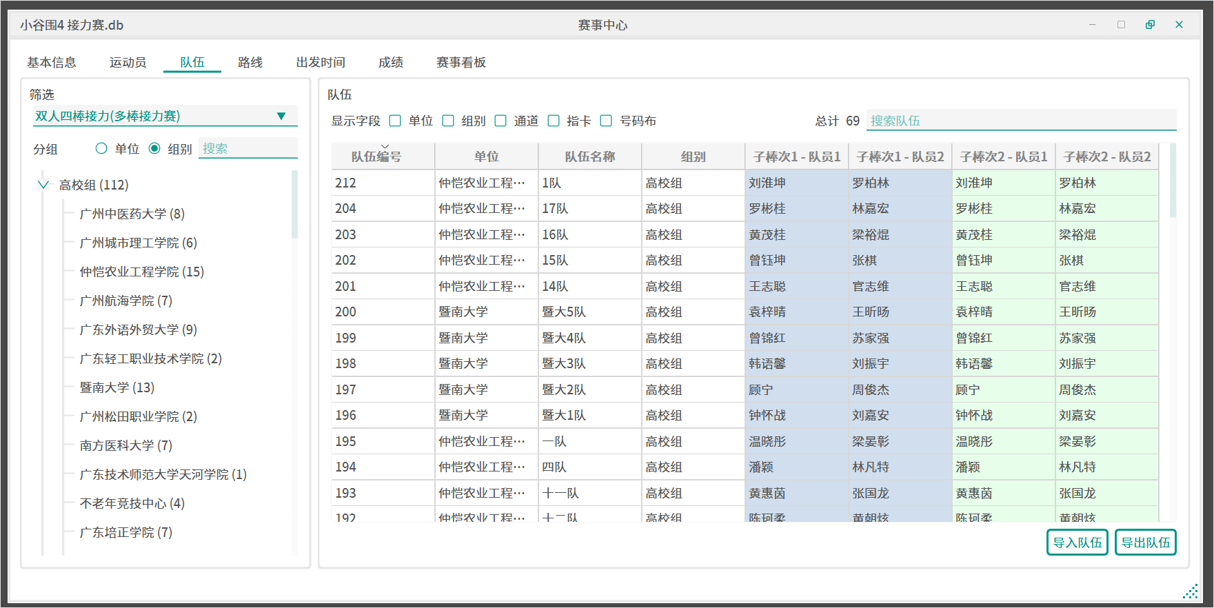 - 按照后面的章节队伍管理导入接力队伍,并在通道列表的