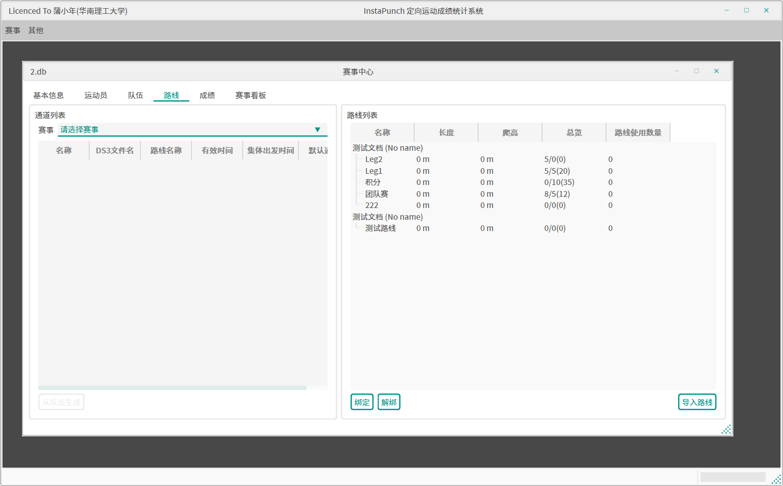 大部分活动都是单通道活动,也就是一个组别在一个竞赛日只有一条通道 & 一条线路。这一模式下,只需要给默认通道绑定好正确的线路即可。