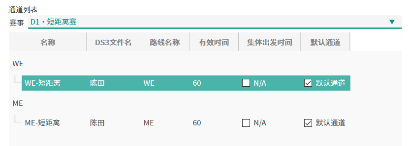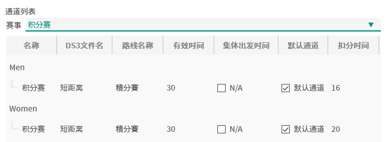 | 默认通道 | 当一个运动员被分配到这通道所属的组别时,默认为其分配该通道 | ✔ |
