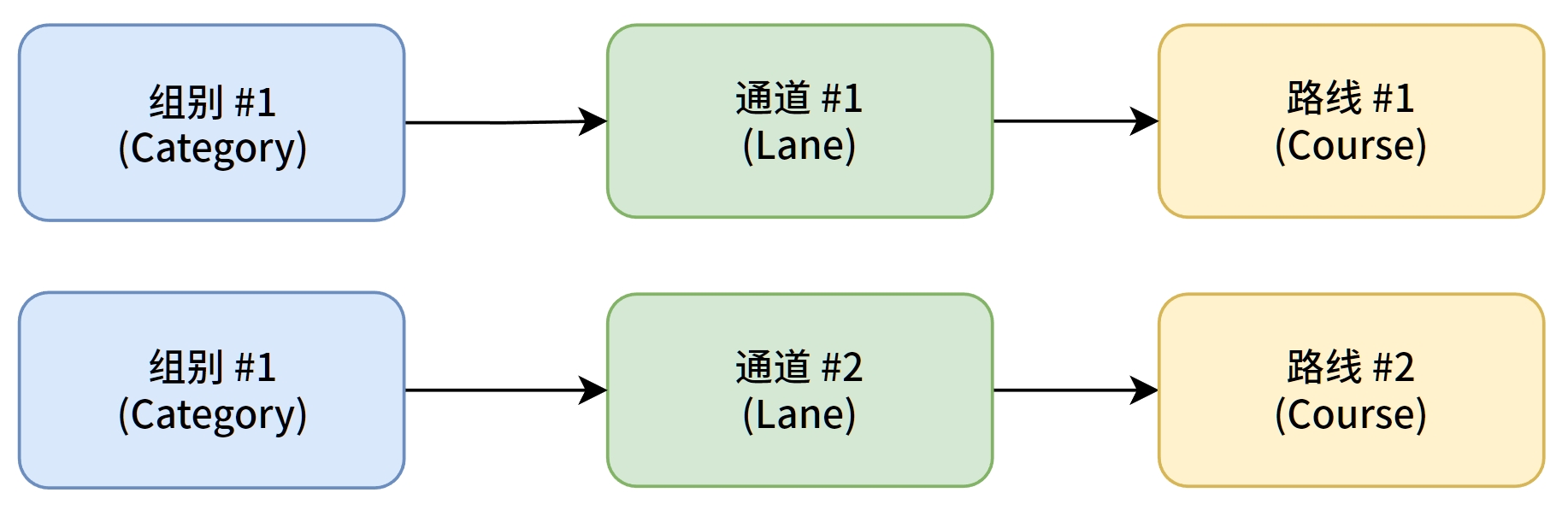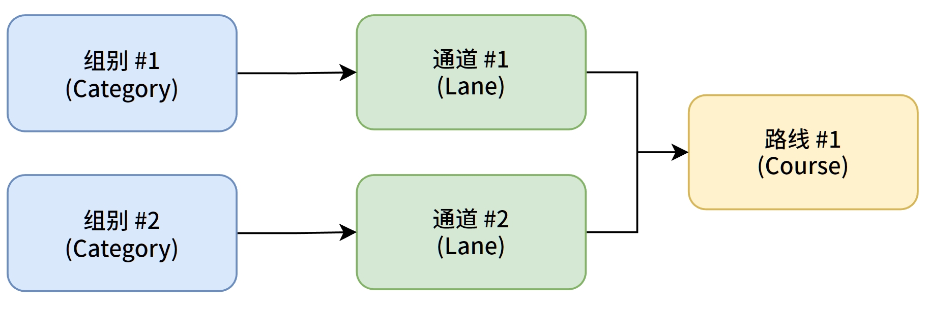 如下图所示,竞赛日中各组别包含一个默认通道并绑定到对应线路