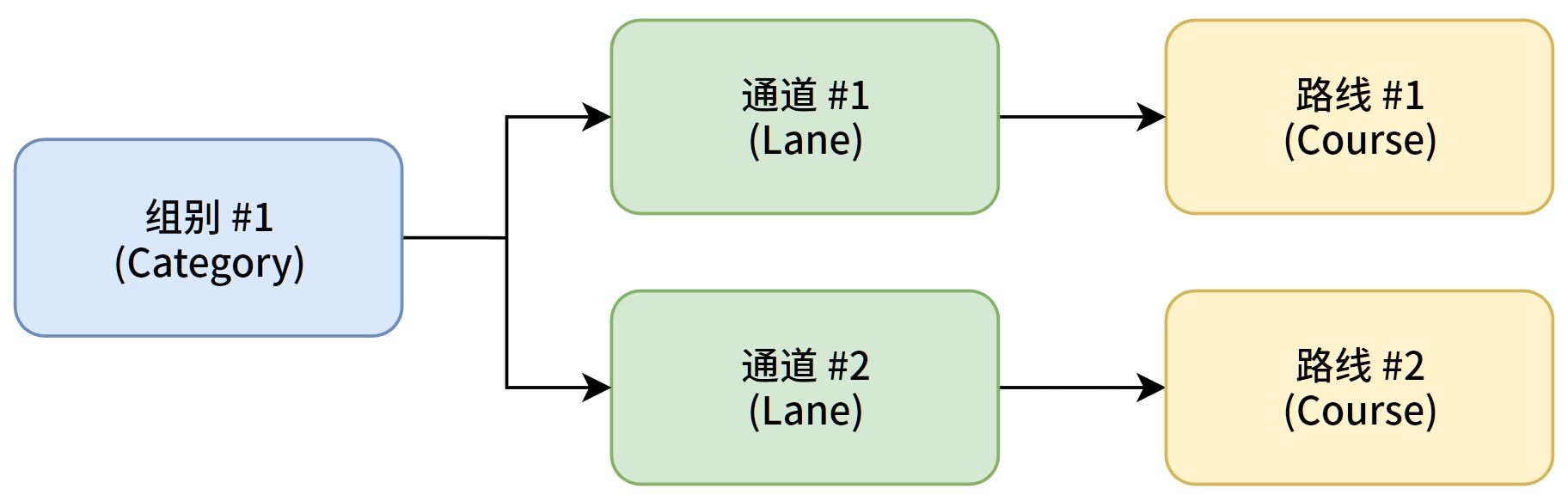 InstaPunch使用了通道(Lane)的概念来作为运动员和线路的桥梁。试想我们正在组织一场比赛,出发区有若干通道,通道尽头是一个地图框,里面放着这个通道需要跑的线路(Course)。显然,运动员并不会真正关心线路这一概念,他们只是按照出发通道前往指定通道排队。