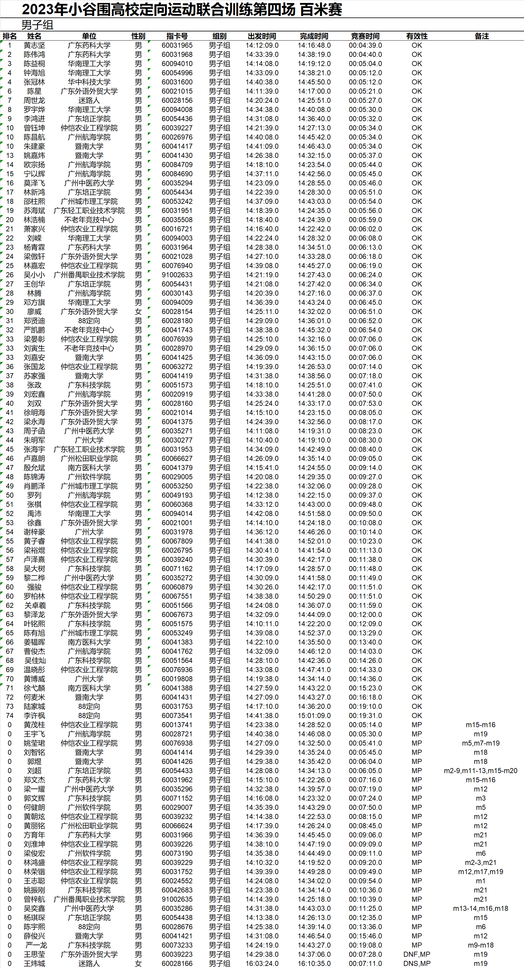 备注栏会注明该运动员的MP情况。