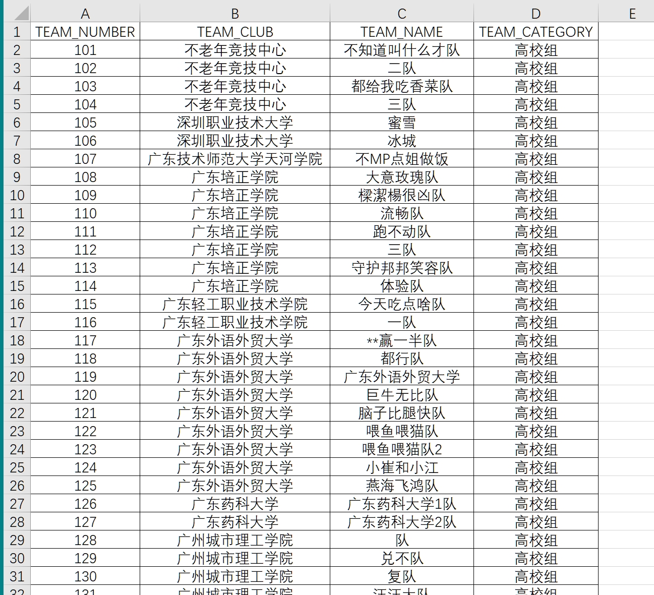通过该功能,你能获得一张包含完整队伍与队员信息的表格,下图为一个示例。